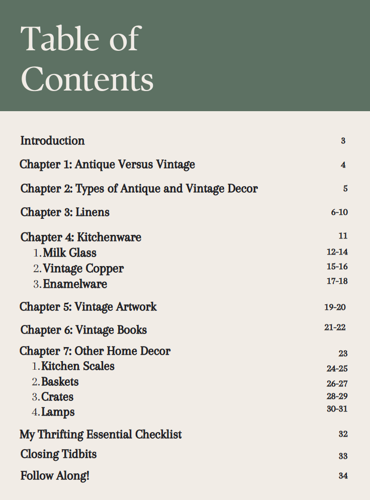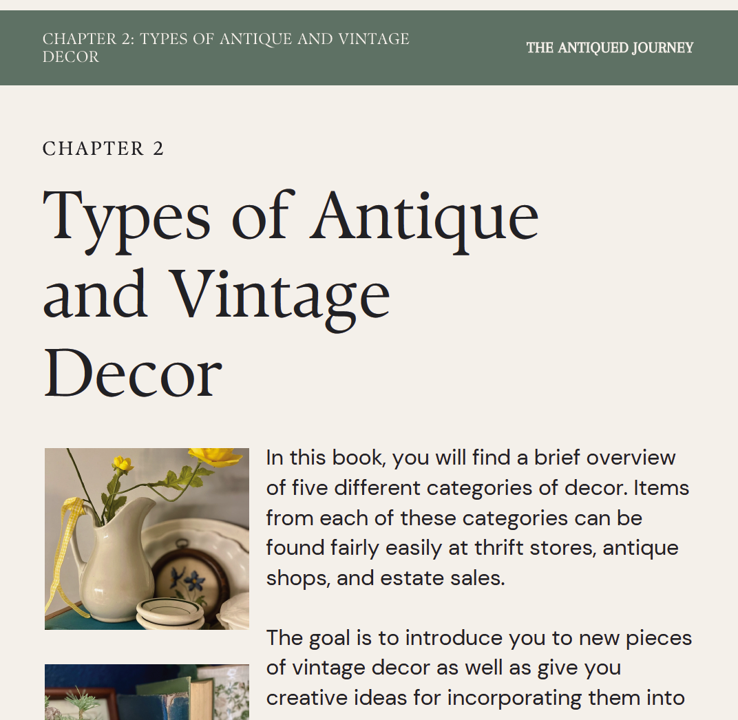 Found and Favored is a thoughtfully designed 34-page digital e-book by Rachel Granholm of The Antiqued Journey, created for anyone who loves antique and vintage style but wants practical, beginner-friendly guidance on how to find and style those pieces with confidence.